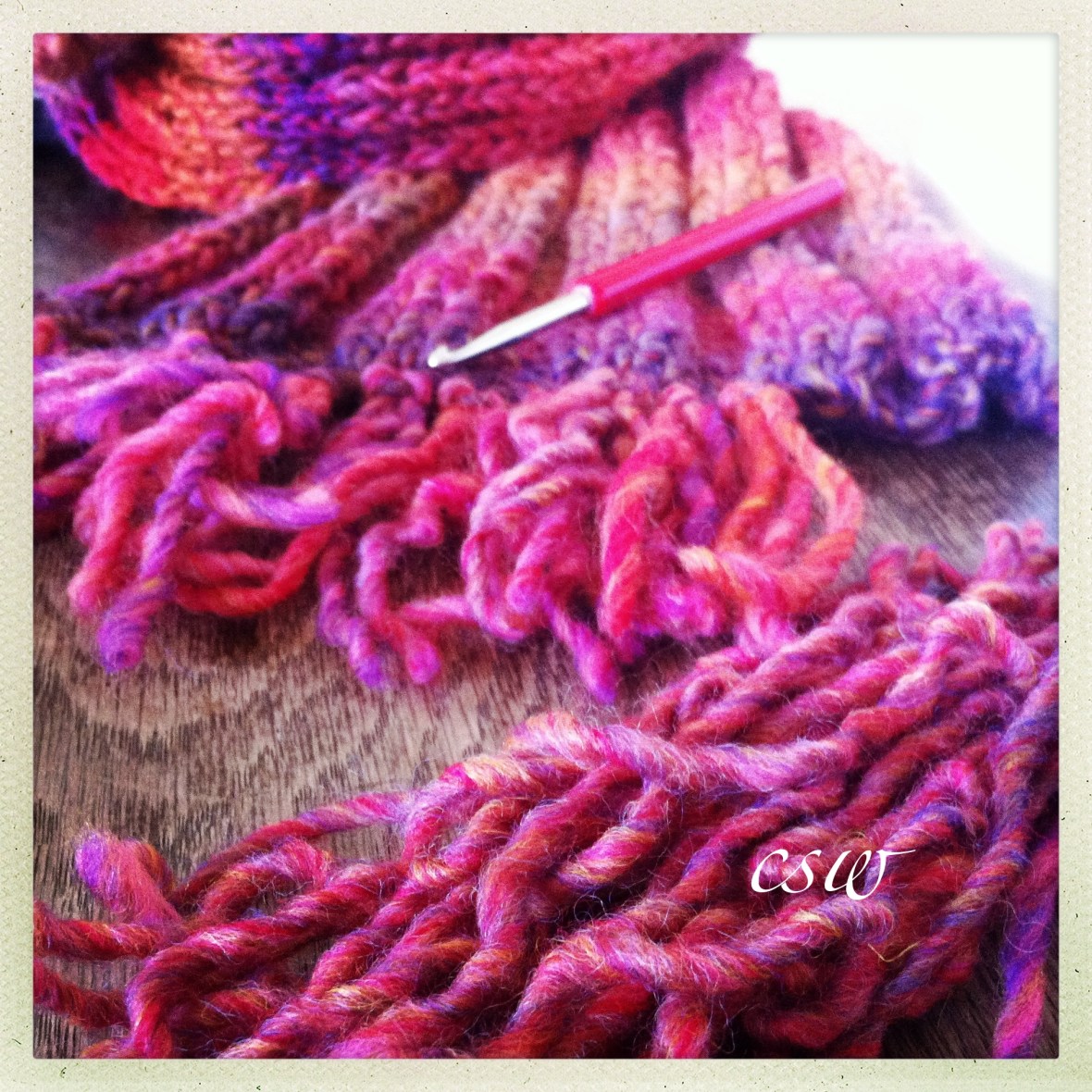 … fringeing a scarf. Argh!