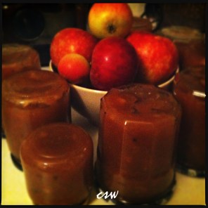 … so most of the apples ended up as jam, spiced with cinnamon, cloves, cardamom, white pepper and whiskey, sweetened with agave nectar and honey). It tastes a bit like apple ‘spekulatius’ (spicy German Christmas cookies). Yumm! x
