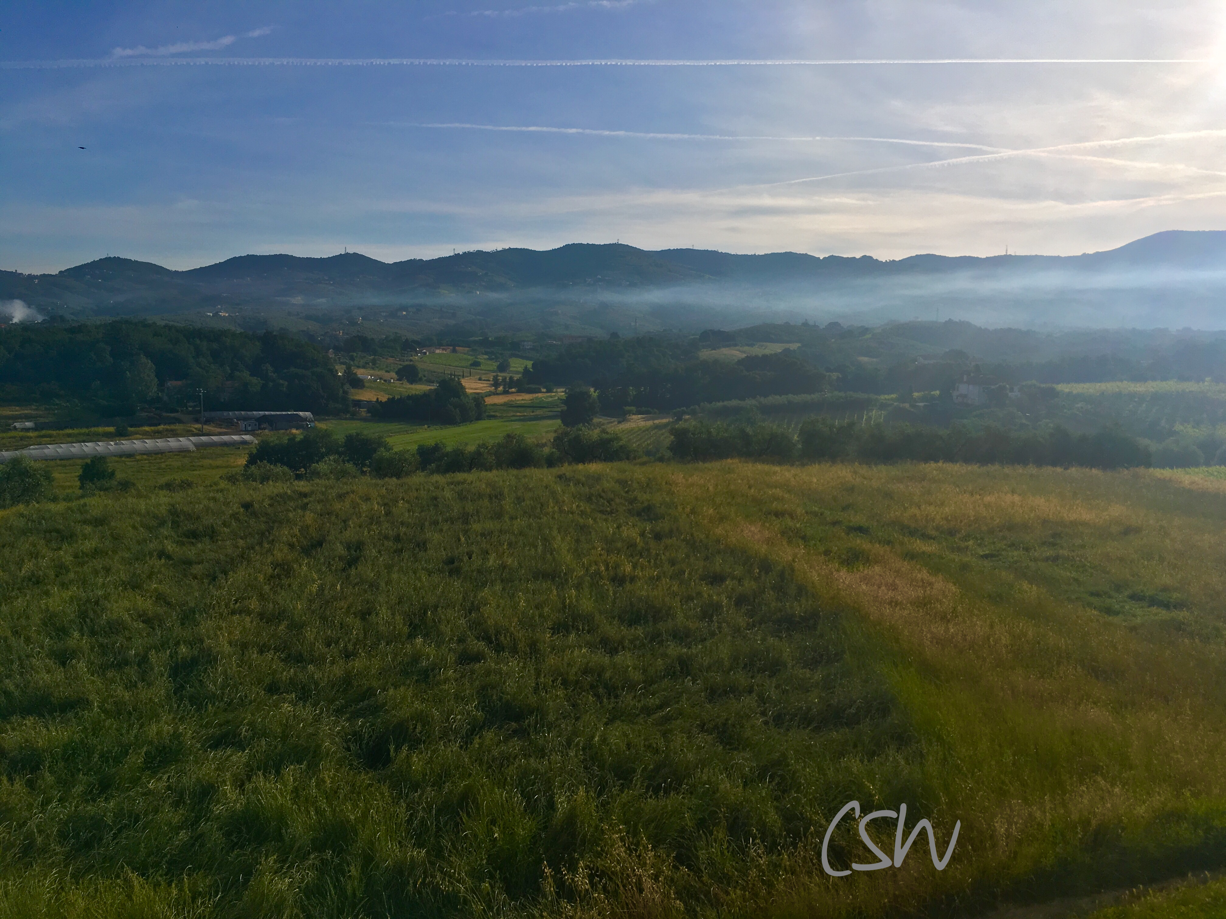 The next morning, after a decent breakfast (Italian breakfast, as I know it, is quite rich, with croissants, toast, white bread, all sorts of cakes, jam, salumi and ham, cheese plus all sorts of coffee) I went on again on the given Tuscany Trail track. It was much easier now, no steep hills, no stony roads, no crazy downhills, but the famous strada bianci! I met two French guys again, we had done a bit of the arduous part on Saturday together, now we teamed up again for a while, we talked about the obstacles behind us and took each others photos. After a while though, we parted and I was on my own again, which was totally fine. I took some breaks here and there to sit and look at the Tuscan landscape with its soft-looking hills, still green, with meadows covered with poppies, with butterflies happily dancing around. Never have I seen so many butterflies in one place. And the silence was beautiful, I could hear nothing but the wind and birds. No motor sounds or highways. Just the peace of nature as it is and always should be.